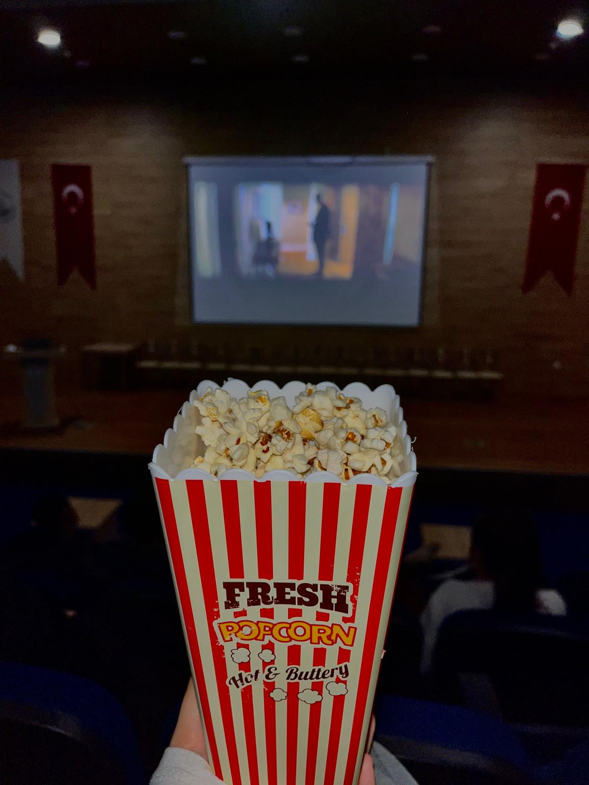 Etkinlik süresince öğrencilere patlamış mısır ve içecek ikramı yapılarak sıcak ve samimi bir atmosfer oluşturuldu. Katılımcılar, hem filmi keyifle izleme fırsatı buldu hem de topluluk üyeleriyle etkileşim kurarak güzel bir etkinlik deneyimi yaşadı.