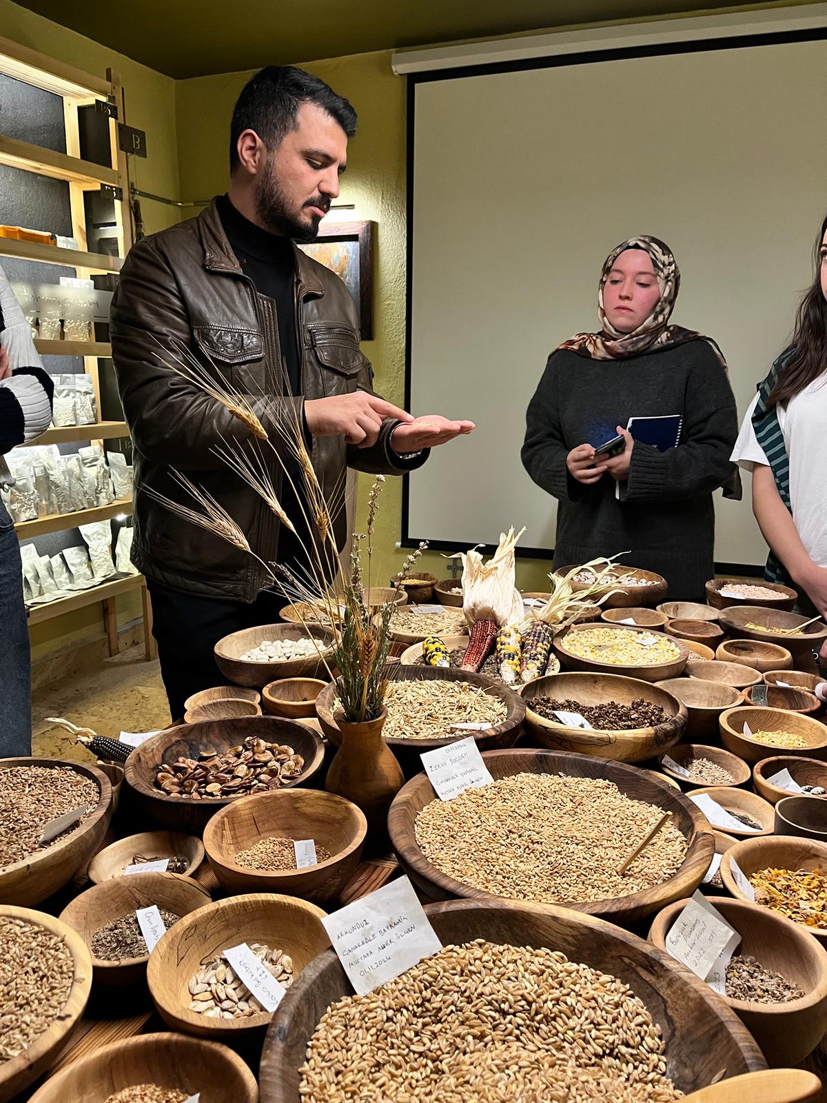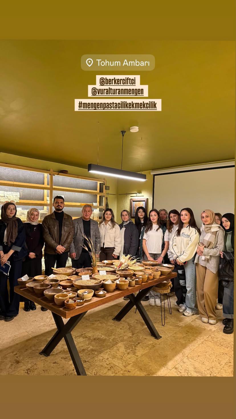Pastacılık ve Ekmekçilik Topluluğu tarafından düzenlenen Tohum Ambarı Ziyareti kapsamında öğrenciler, yerel tohumlar ve tarımsal sürdürülebilirlik konularında bilgilendirildi. Gıda üretiminin temelini oluşturan tohumun önemi üzerine gerçekleştirilen ziyarette, Öğretim Görevlisi Berker ÇİFTÇİ tarafından öğrencilere kapsamlı bilgiler aktarıldı.