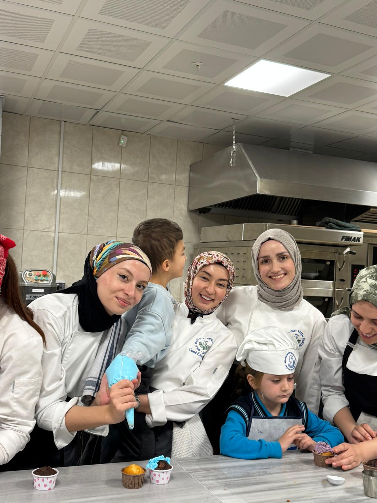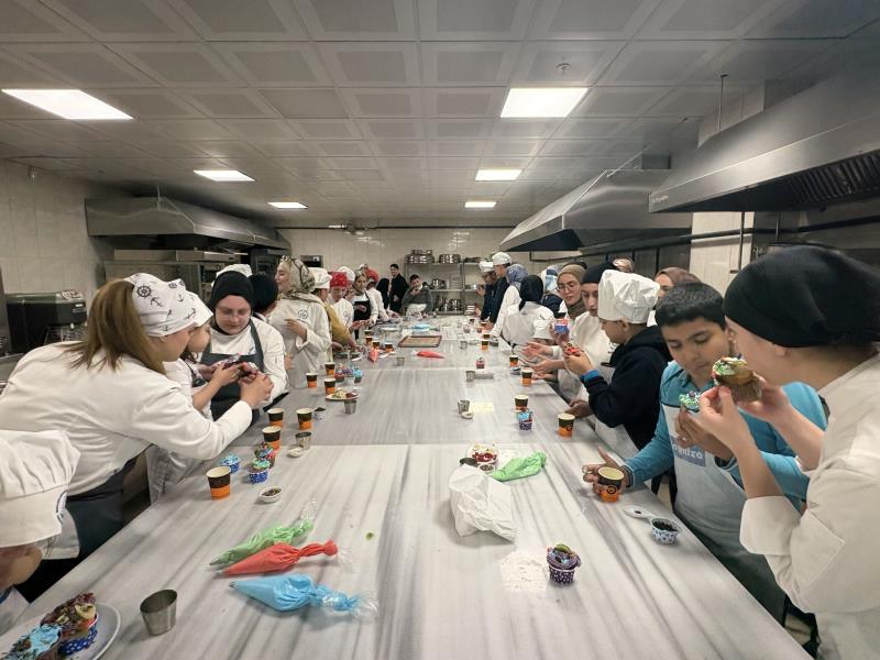 Etkinlik, öğrencilerimizin ve akademik personelin sıcak karşılama atmosferiyle başladı. İlk aşamada konuk öğrencilerle birlikte çikolatalı kurabiyeler hazırlanıp pişirildi. Ardından gerçekleştirilen cupcake süsleme etkinliği ile renkli ve eğlenceli anlar yaşandı. Hazırlanan cupcakeler keyifle tüketildi.