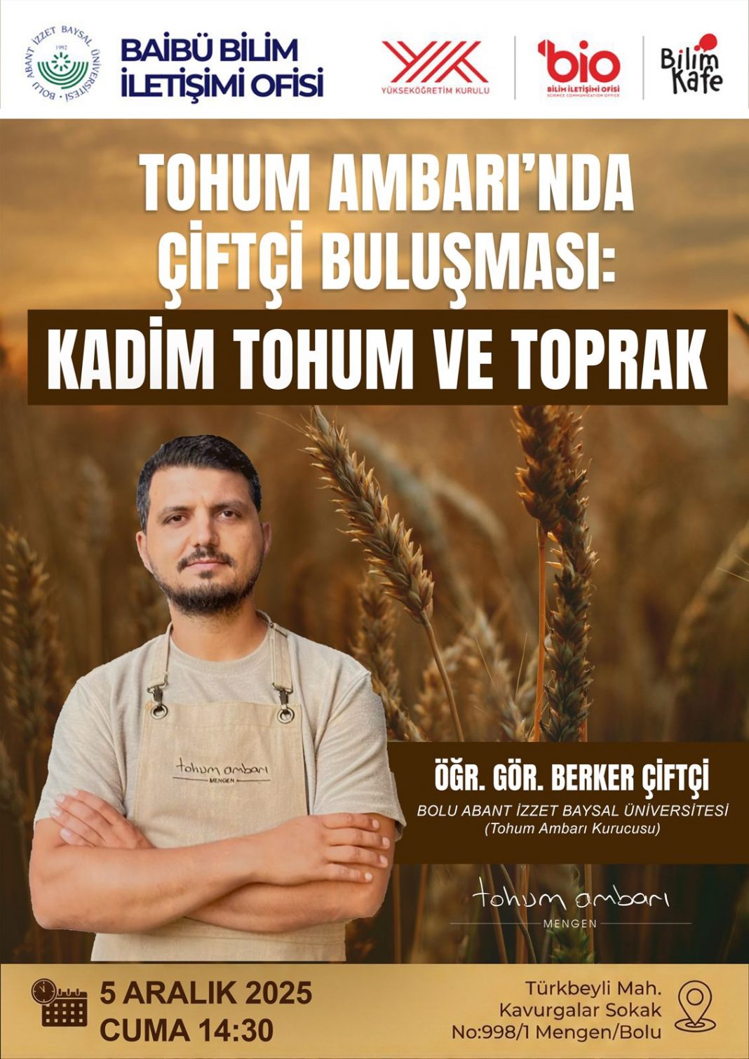 5 Aralık Dünya Toprak Günü kapsamında, Bolu Abant İzzet Baysal Üniversitesi Bilim İletişimi Ofisi tarafından, Yükseköğretim Kurulu (YÖK) ve paydaş kurumların desteğiyle “Tohum Ambarı’nda Çiftçi Buluşması: Kadim Tohum ve Toprak” başlıklı bir etkinlik düzenlenecek. ajanda.ibu.edu.tr